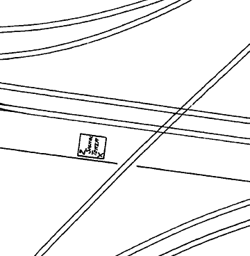 at earlier dates. The wider right-of-way and the rail remnants adjacent to the