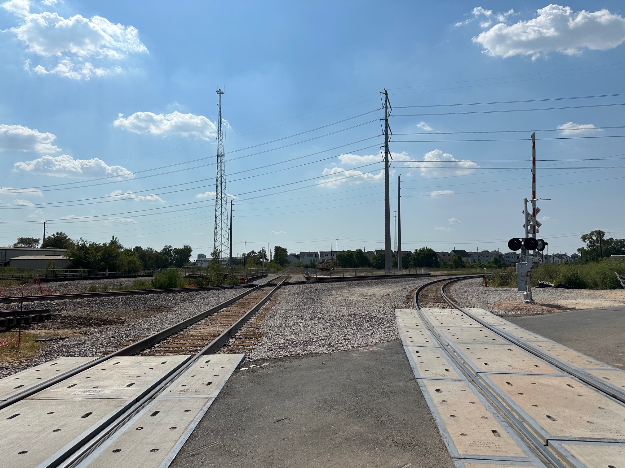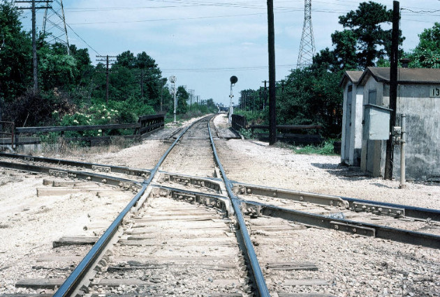 right-of-way is visible in the distance as the tracks now curve south to connect