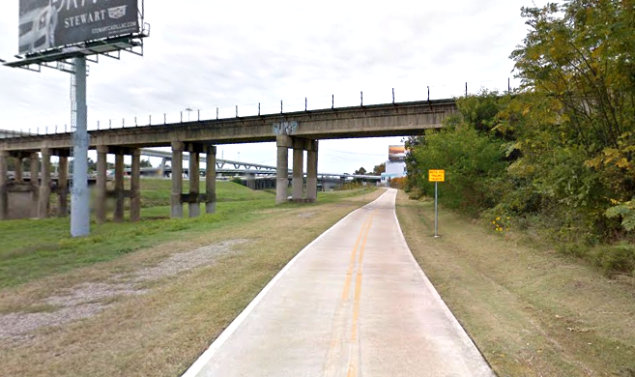trail) beside White Oak Bayou. The Freight Line's GH&SA heritage means that this