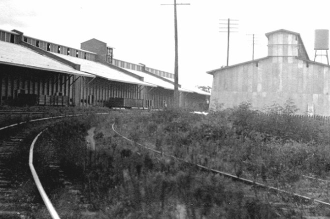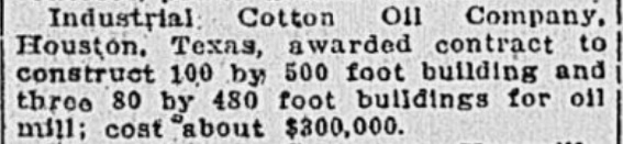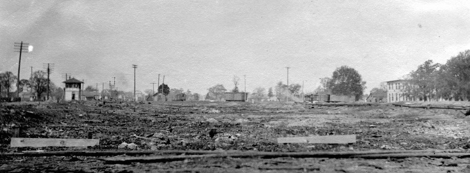 east-northeast of the tower facing west, about where the Industrial Cotton Oil Co. had been