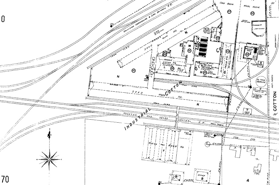 north across the H&TC and curved due east toward the main yard of the Texas & New Orleans (T&NO) Railroad.