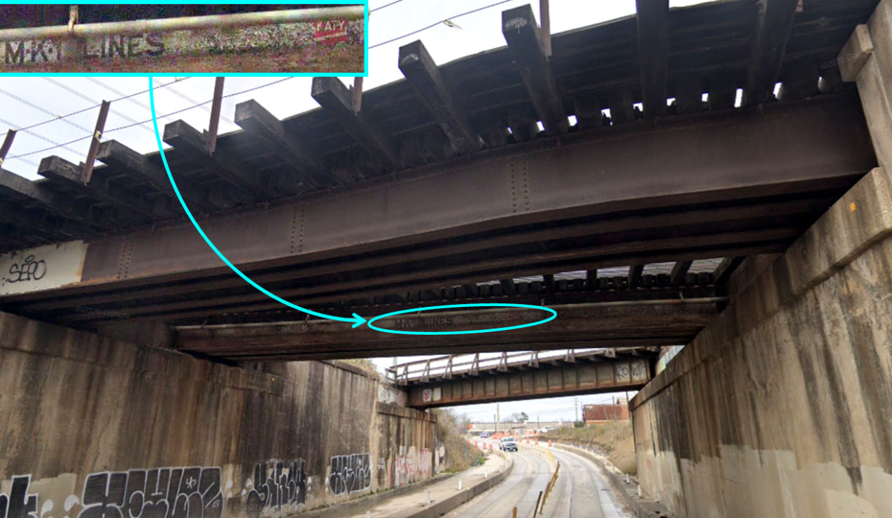 bridge's SP heritage remains faintly visible (yellow box.) Substantial