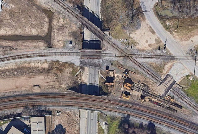 satellite image from December, 2018 shows a more detailed view of the bridges over Hempstead Rd. at