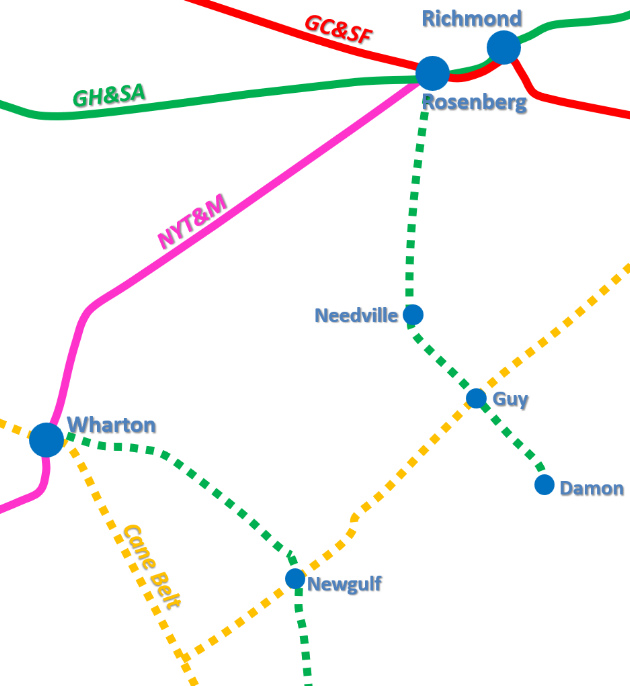 The line to Damon came off the ex-NYT&M line, went eleven miles south to Needville,