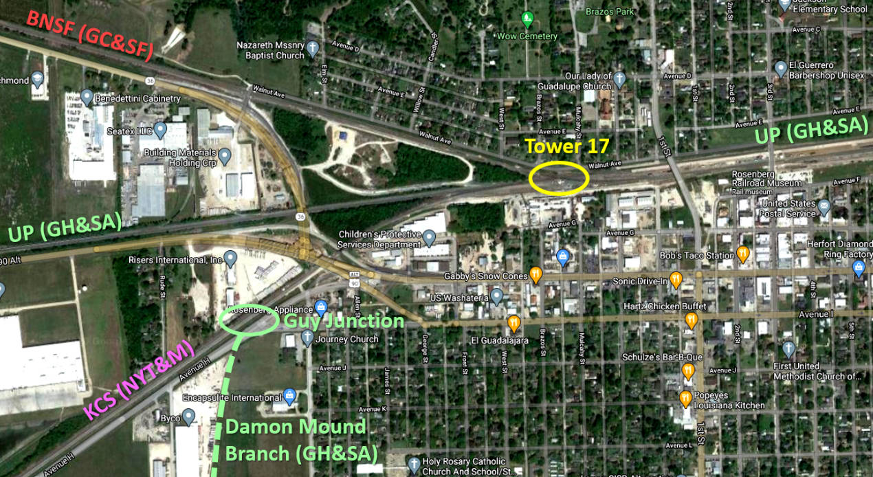through Rosenberg required its southbound trains coming out of Houston to continue west to Flatonia on UP's Sunset Route.