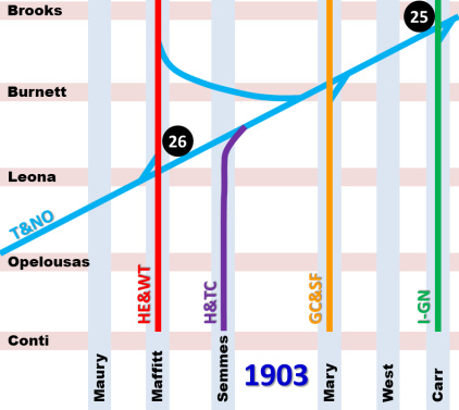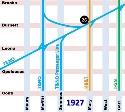 T&NO, to become fully merged in 1934. The H&TC line on Semmes St. became the
