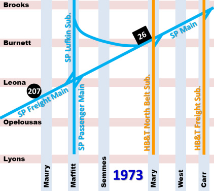 is the HB&T North Belt. Just beyond the HB&T track, the SP Passenger Main
