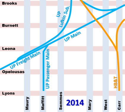 east to join the UP main instead of crossing to continue to Lufkin as they did
