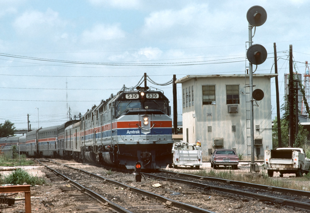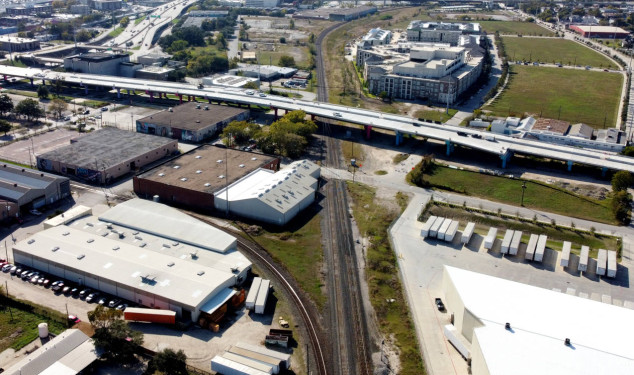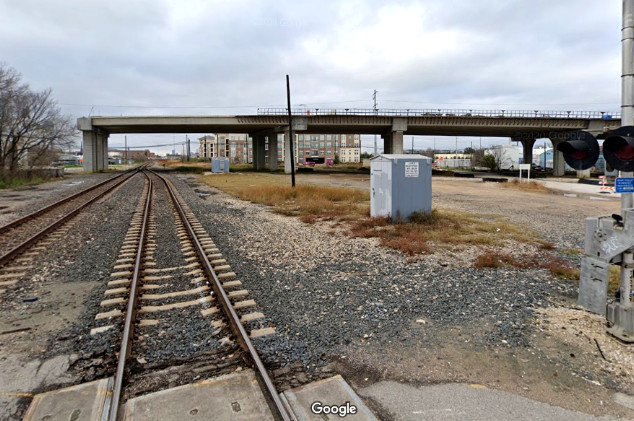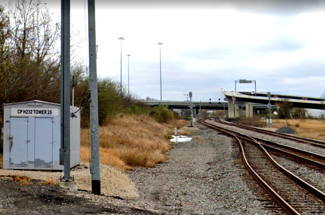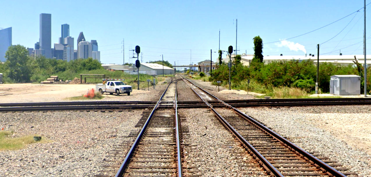 left (south) toward Buffalo Bayou and the Amtrak station.