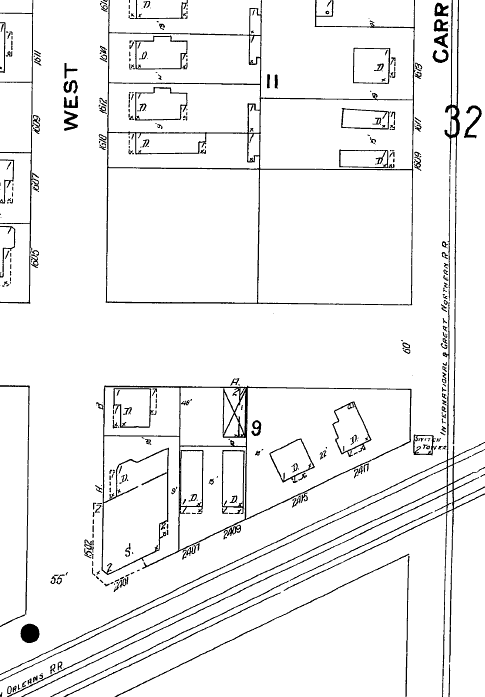 "Switch Tower" in the northwest quadrant of the T&NO/I-GN crossing.