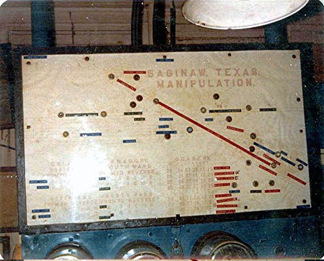 As the town grew, railroads were an ever-present component of life in Saginaw. The mills and elevators, served by rail, employed many townspeople. As the main highway through town evolved to become U.S. Highway 287, it provided direct views of rail operations for miles, serving as a virtual boundary dividing Saginaw into industrial and residential zones (though that is no longer the case; Saginaw "jumped the tracks" and began developing east of the railroads as Ft. Worth residents spilled out into the suburbs in ever-increasing numbers.) The proximity of the tracks to U.S. 287 and the wide open views of railroading from the highway made Tower 29 a frequent target for photographers. It could easily be the most photographed among all Texas interlocking towers.