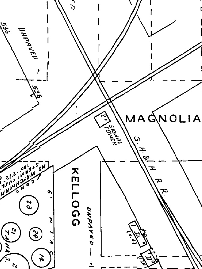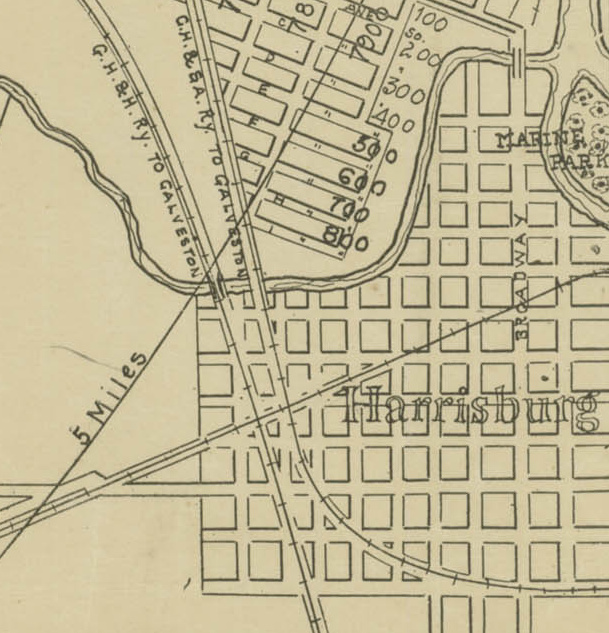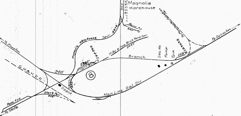 Magnolia Park (Tower 102) in Houston. At Harrisburg, the GL&H tracks crossed the GH&H and GH&SA