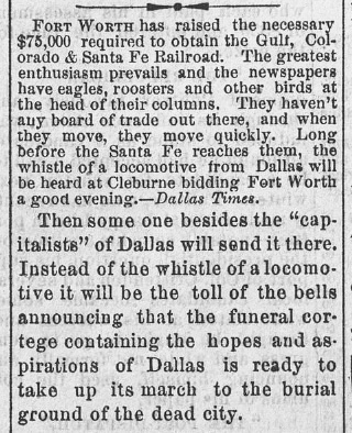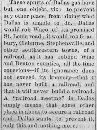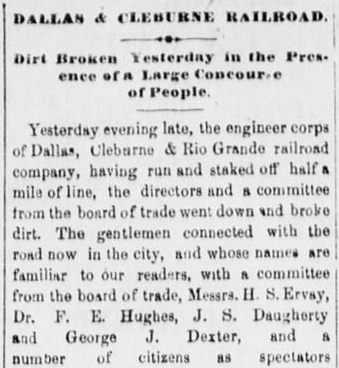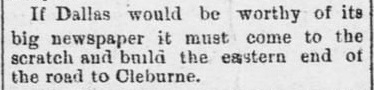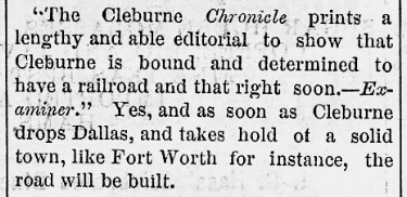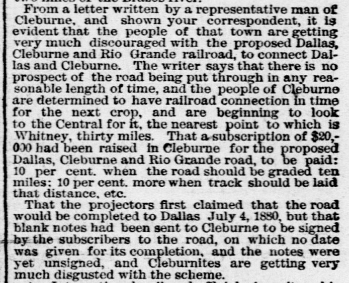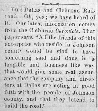 newspaper articles in 1880 regarding the effort to build a Dallas - Cleburne