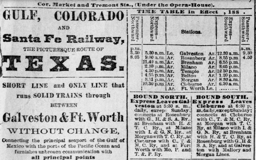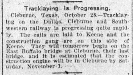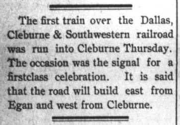 (DC&RG) from Dallas to Cleburne and that two trains were run over it, after