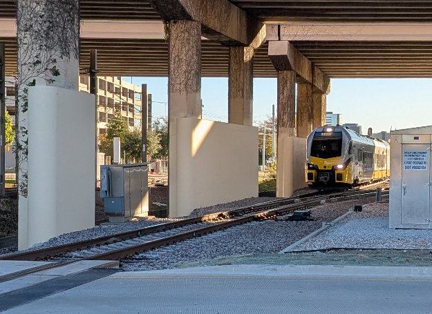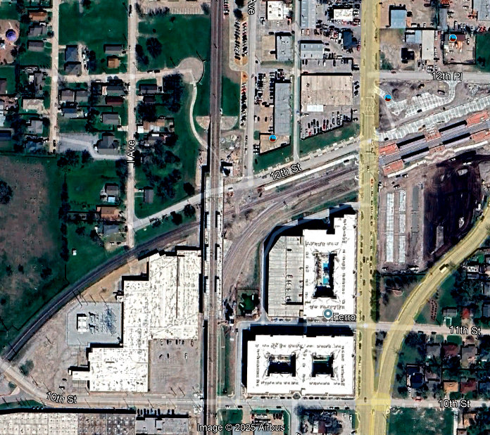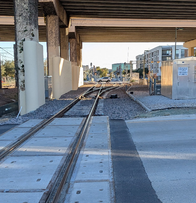 Tower 49 crossing is now obscured by the DART Red Line tracks. The Red Line's