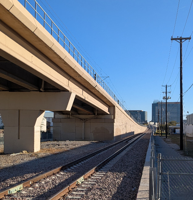 City Line along the west side of the Red Line. In this view from 10th St., the Silver Line rises in the distance to