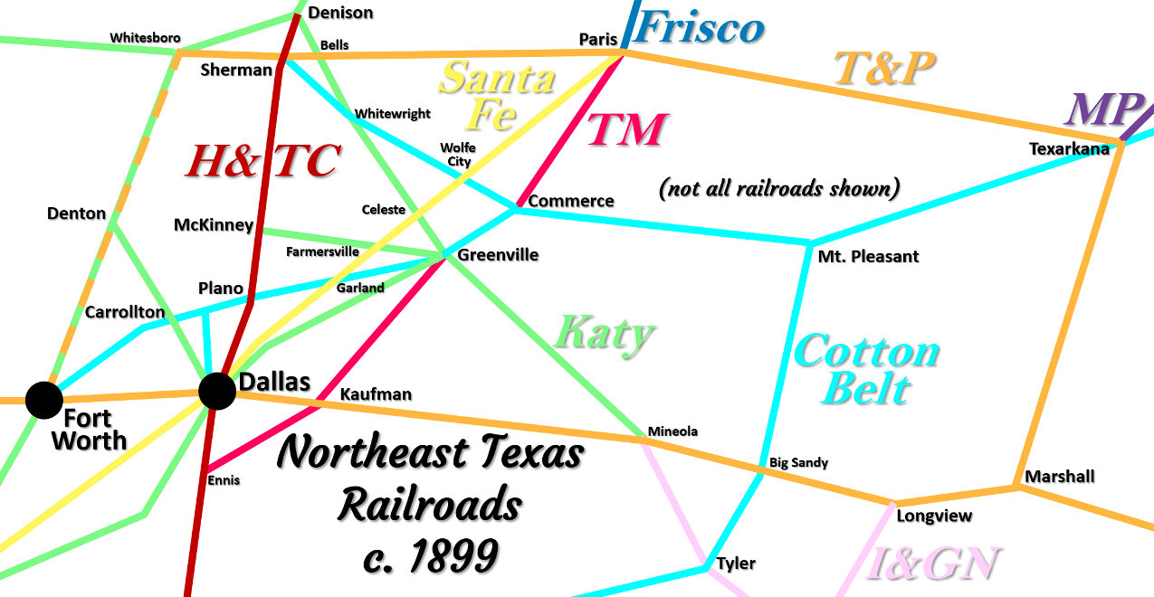 northeast Texas railroads c.1899 (not all railroads shown.) By this time, Jay Gould