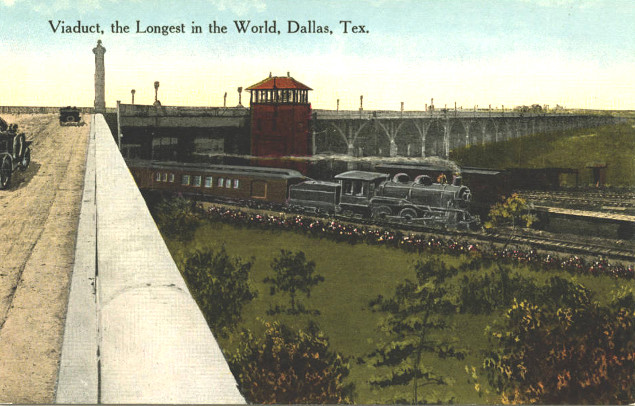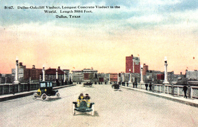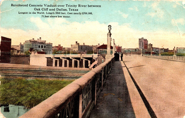 the construction of the Dallas - Oak Cliff Viaduct. From this direction, the