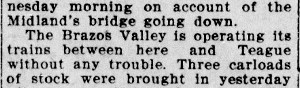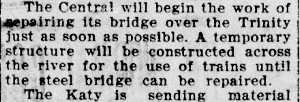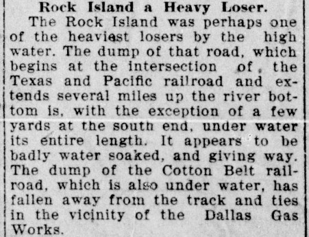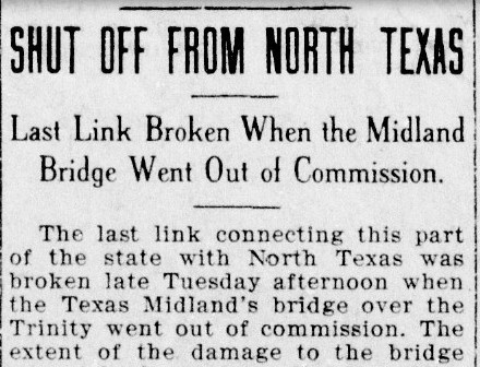 Texas Midland bridge at Rosser -- see below.) The river was reported to be