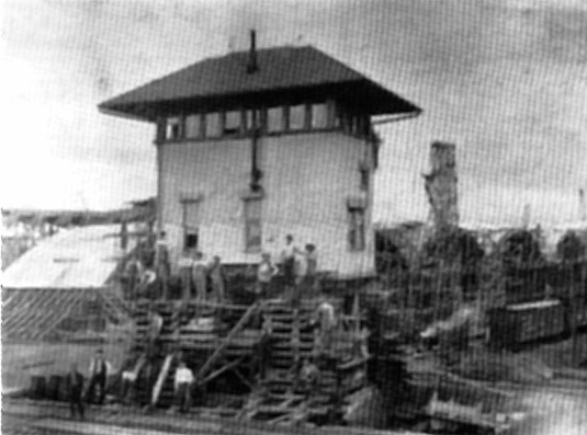 Station. The tower was adjacent to an interurban bridge (note overhead wires
