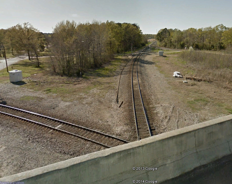 curve to the east. The Katy line enters on the northwest side of town,