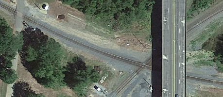 right-of-way of the J&NW spur. The blue circle is the best guess for the site of