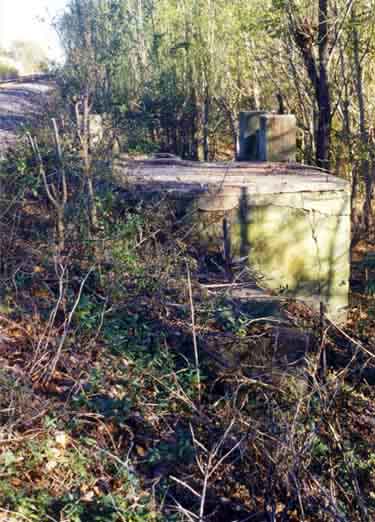 the west face (left) and south face (center) of this foundation. (photos c.2002 by Myron Malone)