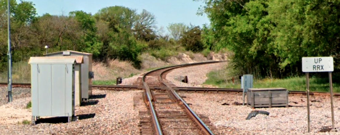 Fort Worth. BNSF's former Katy tracks cross in front of the equipment cabinets