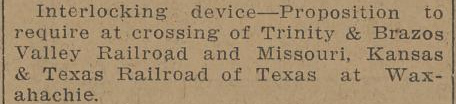 train was southbound through Waxahachie on tracks of the Missouri -