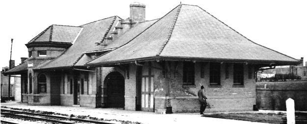 of the Katy depot (left) faces the front of the B-RI depot (right.) The BNSF