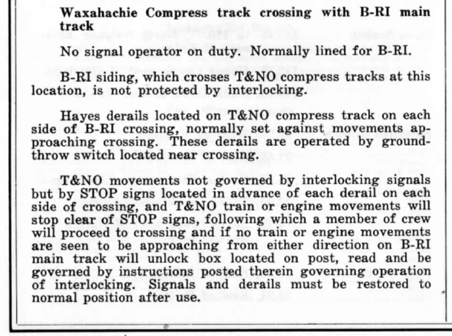 This excerpt from a December, 1959 T&NO ETT describes the operation of the Tower 187 crossing where T&NO's National