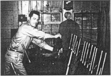 Cooper photo) Right: Tower 67 operator F. J. Davis entertains Richard Cooper, son of Jim Cooper, in December, 1957. (Jim Cooper photo) |