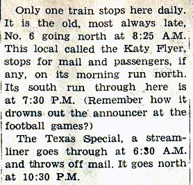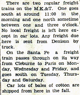 and the Missouri - Kansas - Texas (MKT, "Katy") Railway in Celeste, a