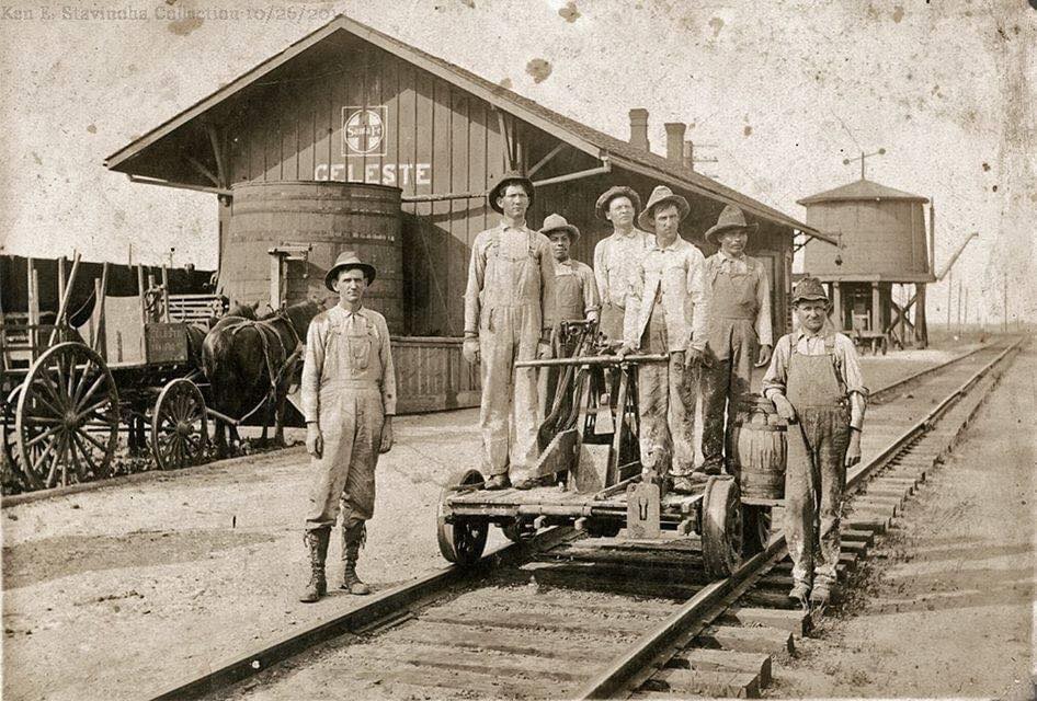 Most of the town of Celeste was located immediately west of the Santa Fe / Katy crossing, but