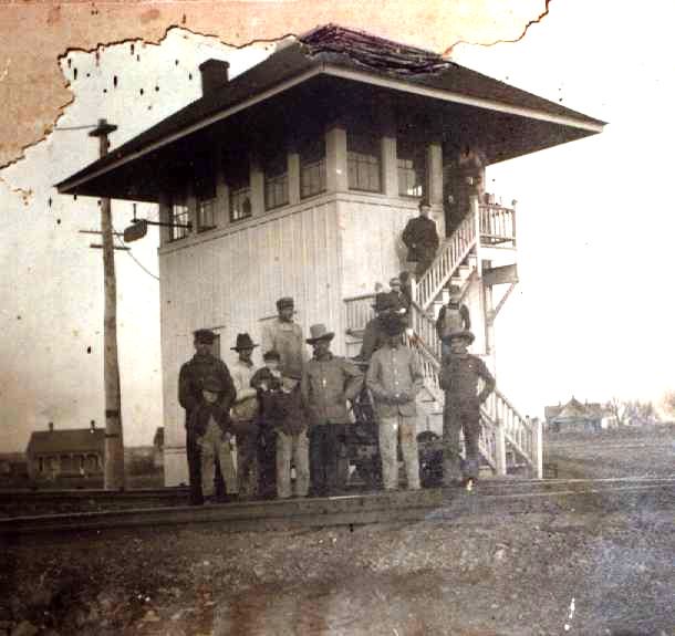 the Katy (which are the tracks visible in the foreground.) The men are standing within the 67-degree angle north of the diamond