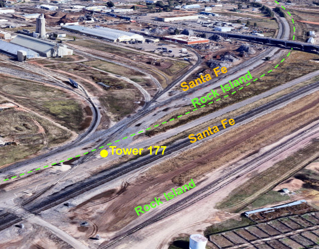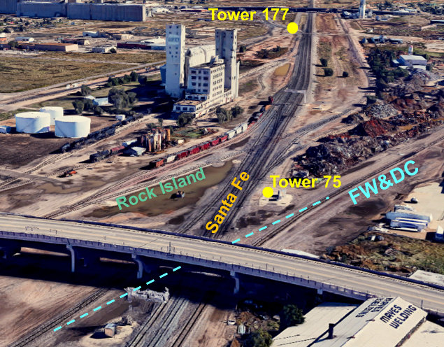 FW&D). The former Rock Island track across the Santa Fe main at Tower 75 was put back in