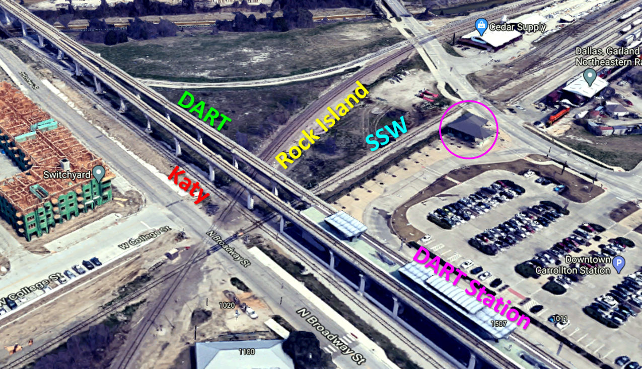 The end result was three railroads crossing at grade in Carrollton -- the Katy, the Cotton Belt and the