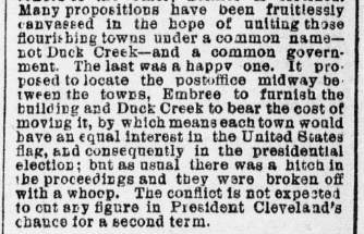 and residents were relocating to both Embree and "new" Duck Creek. A