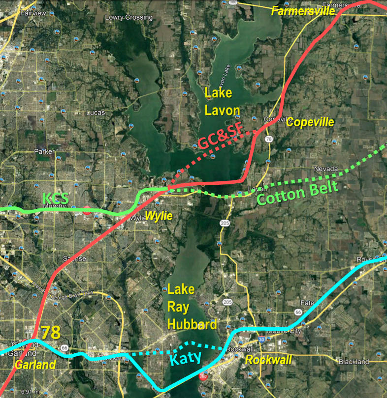 realignment of Santa Fe's tracks between Wylie and Copeville. A St. Louis Southwestern ("Cotton Belt") line between Greenville and