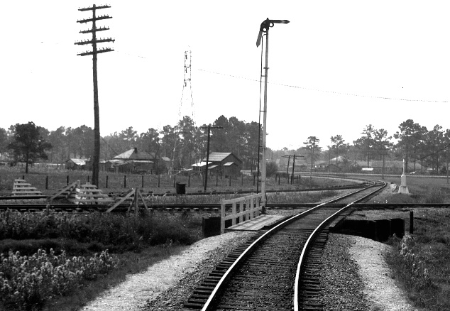 north-south main. In the distance is a bulkhead flat car sitting on the