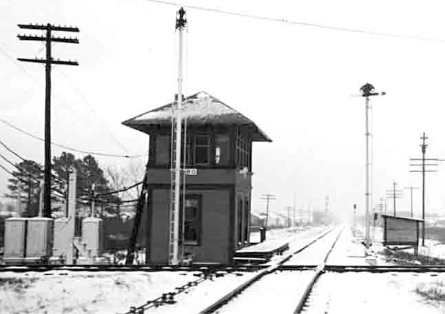 The switch visible in that photo is the continuation of the east connector ("A") that curved onto the East Belt near the tower. The last