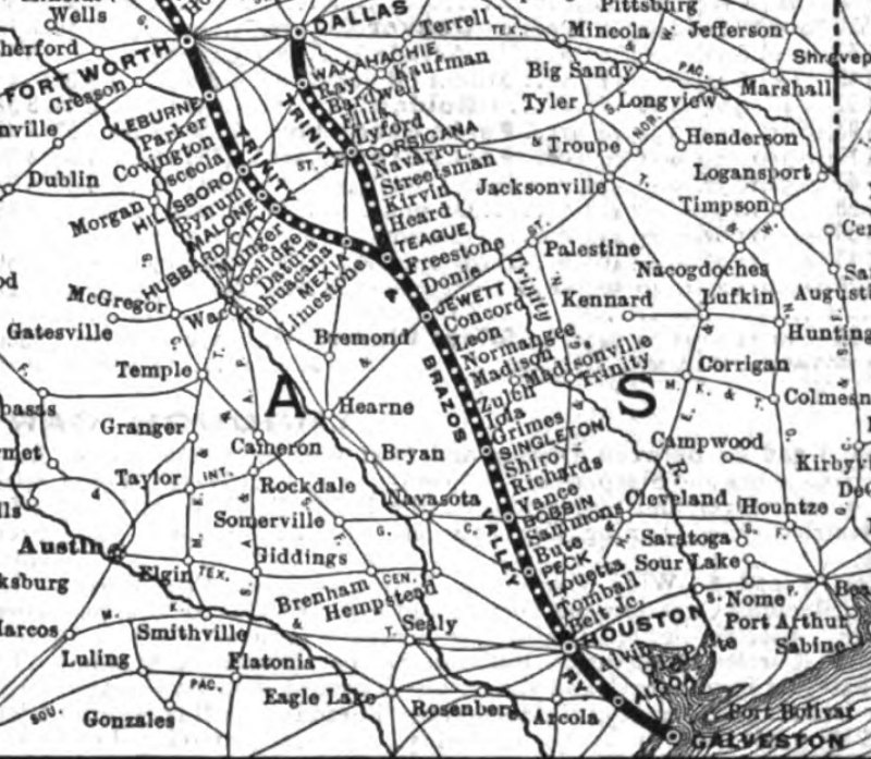 the GC&SF: they needed to serve Houston. The decision to bypass to the south was rational in 1873, but only seven years later, the