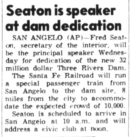 noted that Santa Fe was running a special train to "Three Rivers Dam" for