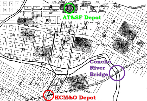 Orient (KCM&O) Railway on the north side of San Angelo. The crossing was