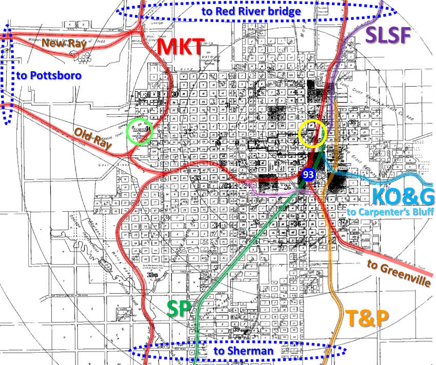 the Katy line from Greenville (the DB&NO's two routes for reaching Denison)