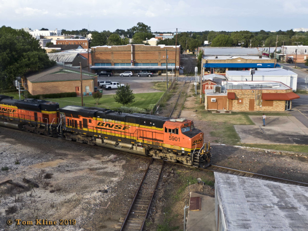 these drone photos of BNSF locomotives southbound (left) and northbound (right)