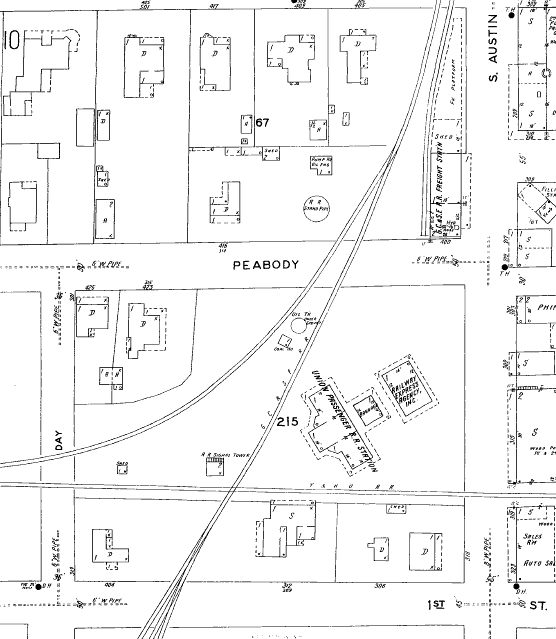 intersection of Peabody and South Austin St., less than fifty yards north of