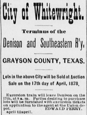 of Denison on April 17, 1878 to bring crowds to Whitewright for an auction of