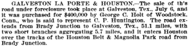 income. In 1894, the Receiver got a better offer; the Galveston, La Porte &