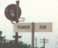 Two views looking north at the Tower 208 diamond: Far Left: Kenneth Anthony photo, undated; Left: Google Street View, Dec. 2019 with radio sign Below: Westward view of Tower 208 sign c.1998. (Jim King photo) ![]() |
